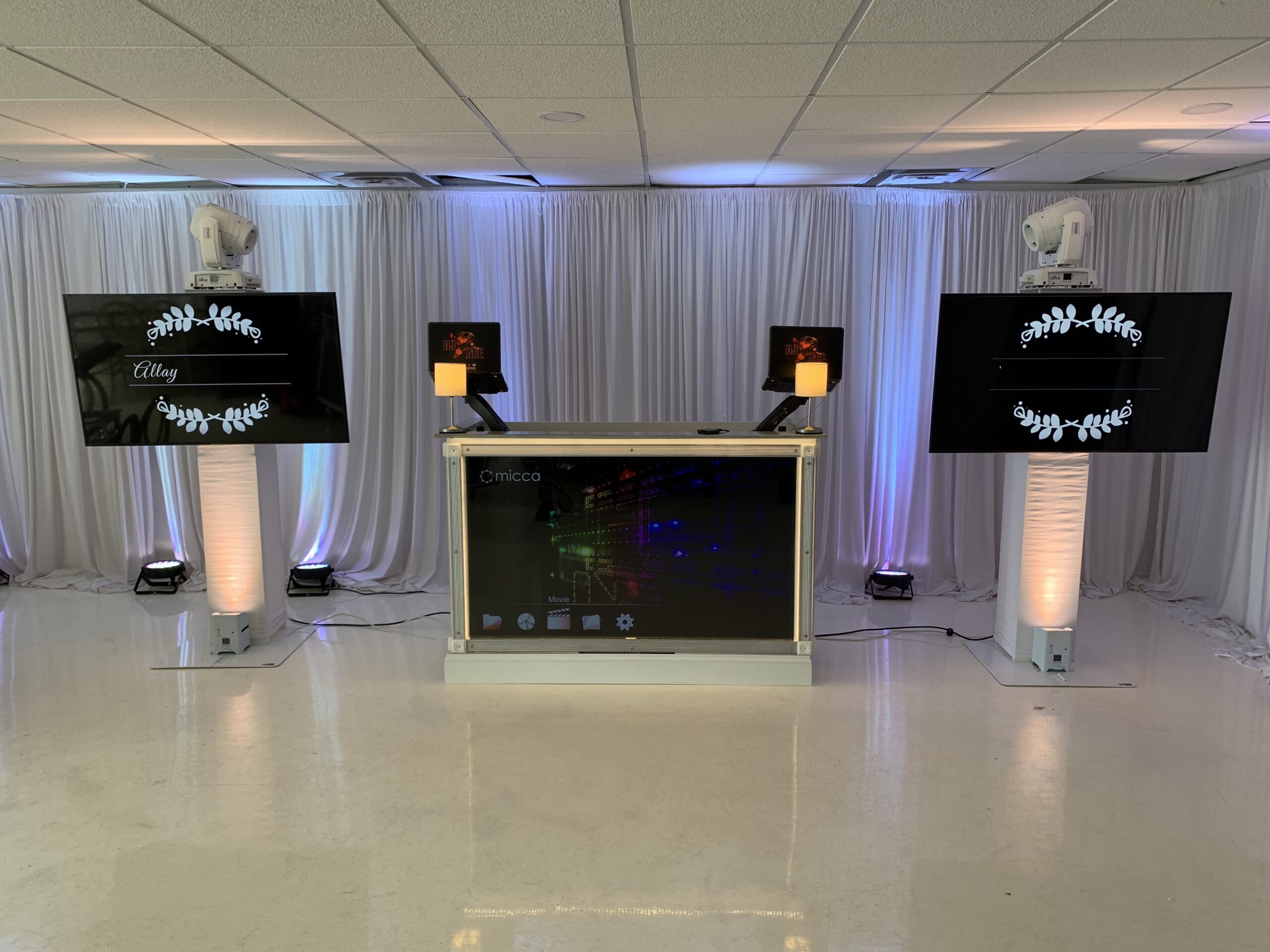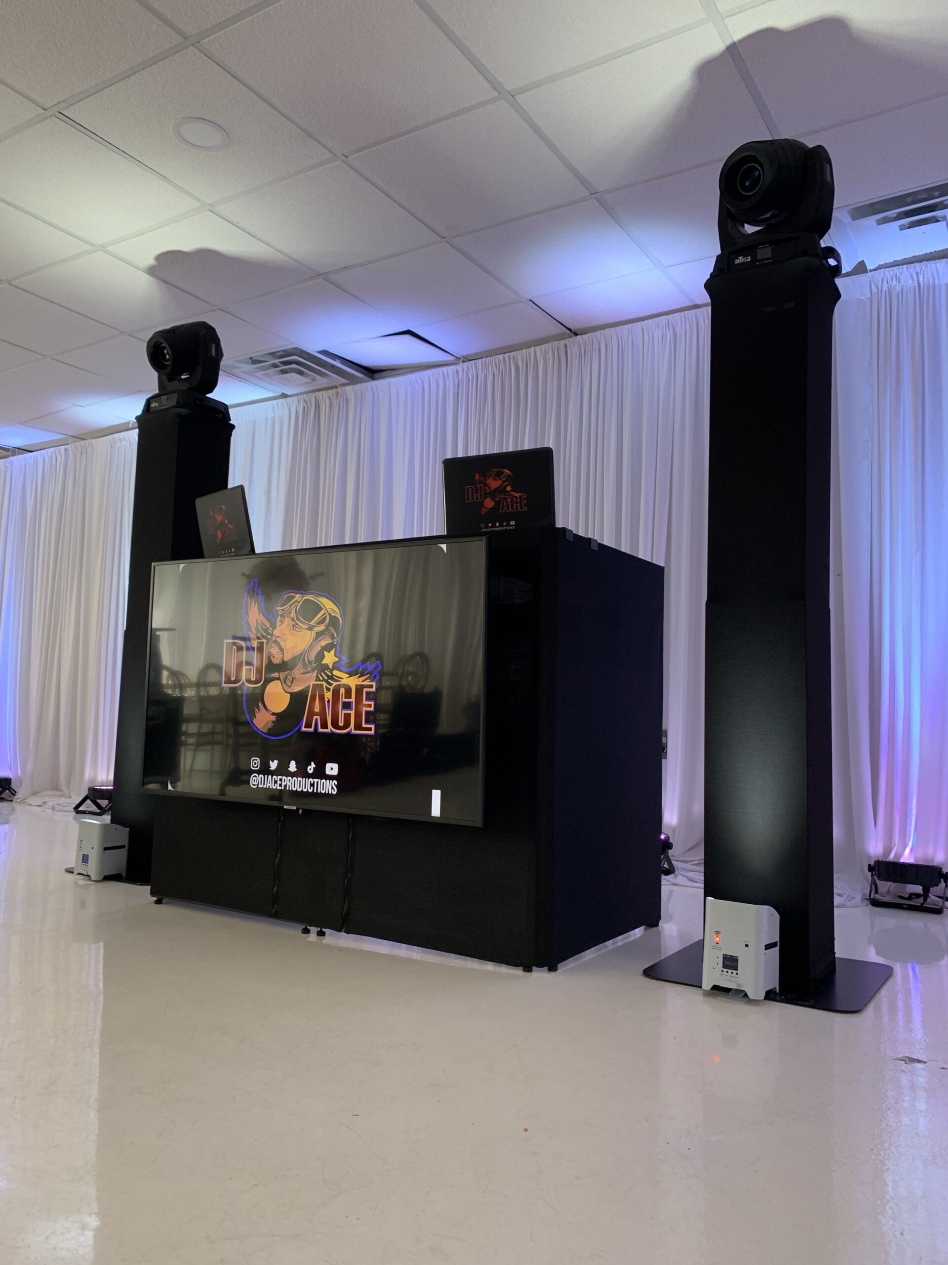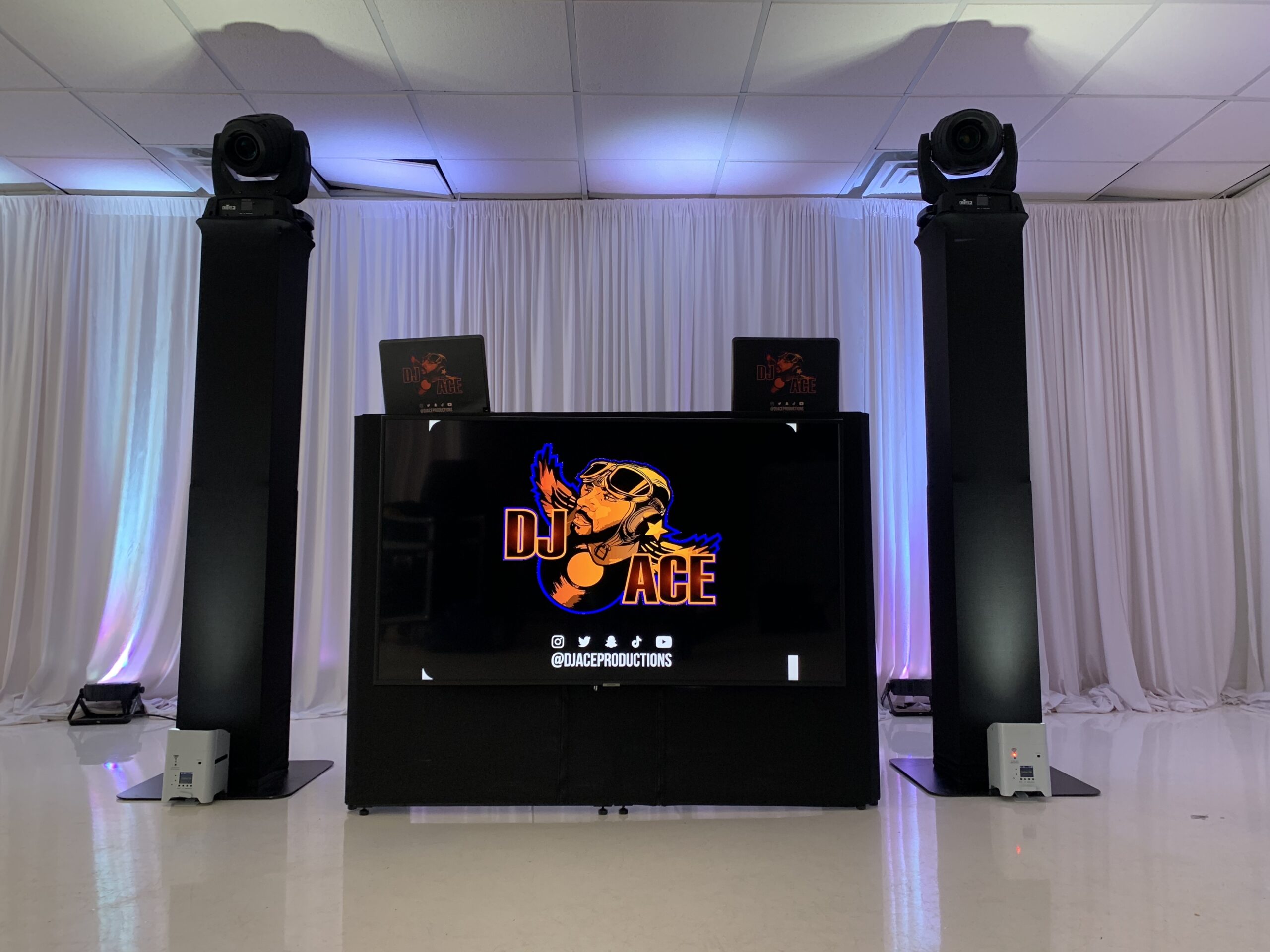 - TWO 50”-55” FLATSCREEN DISPLAYS FOR PICTURE SLIDE SHOWS/AND DJ MUSIC VIDEO MIXES